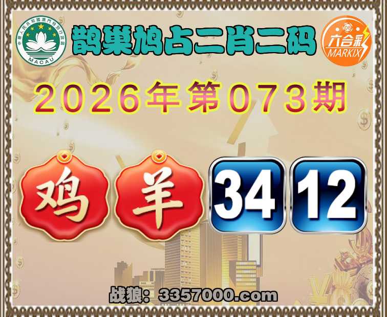 073期:『鹊巢鸠占』 ☝️二肖二码☝️【羊】【34.12】开:鸡34