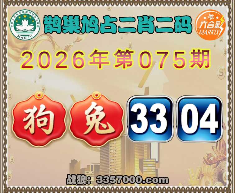 075期:『鹊巢鸠占』 ☝️二肖二码☝️【兔】【33.04】开:狗33